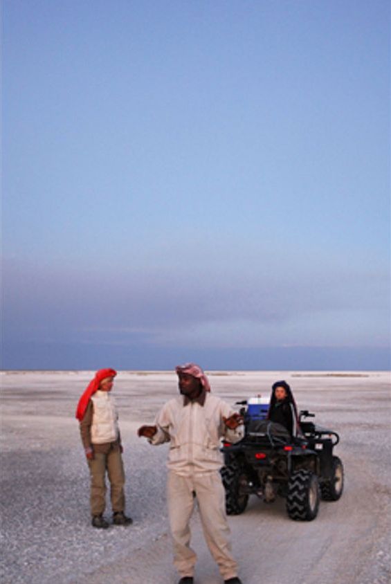 På Camp Kalahari får vi vandra med San-folket, så kallade Bushmen. De kan konsten att överleva av det som naturen ger. Spännande är det också att åka med Quad-bikes, en sorts fyrhjuliga motorcyklar, ute på saltöknen. När mörkret faller framträder den afrikanska nattens alla stjärnor och sedan följer middag och övernattning under bar himmel.