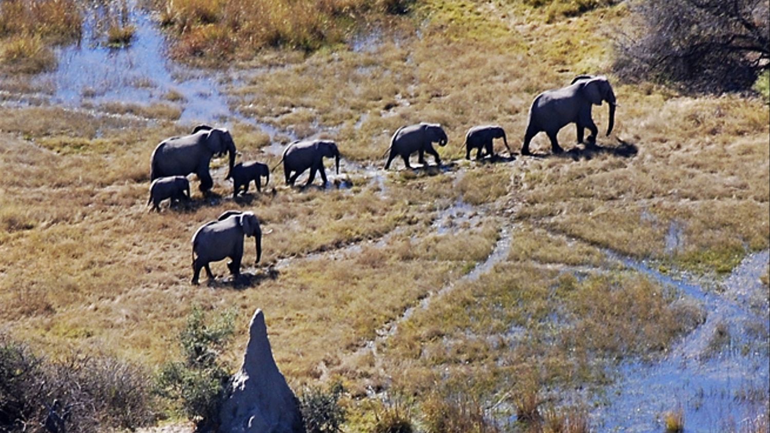 Redan på väg från flygplatsen omringas vi av elefanter på väg ned till floden för att dricka och bada. Alice håller blicken riktad ner mot golvet, men August är jättenöjd och dokumenterar den första av sina Fem Stora med kameran. Vi ser även många giraffer och babianer. De tre europeiska turister som trots förbudet har lämnat sin bil för att ta bilder får en skarp tillrättavisning av vår guide Mobidu Gomotsang.