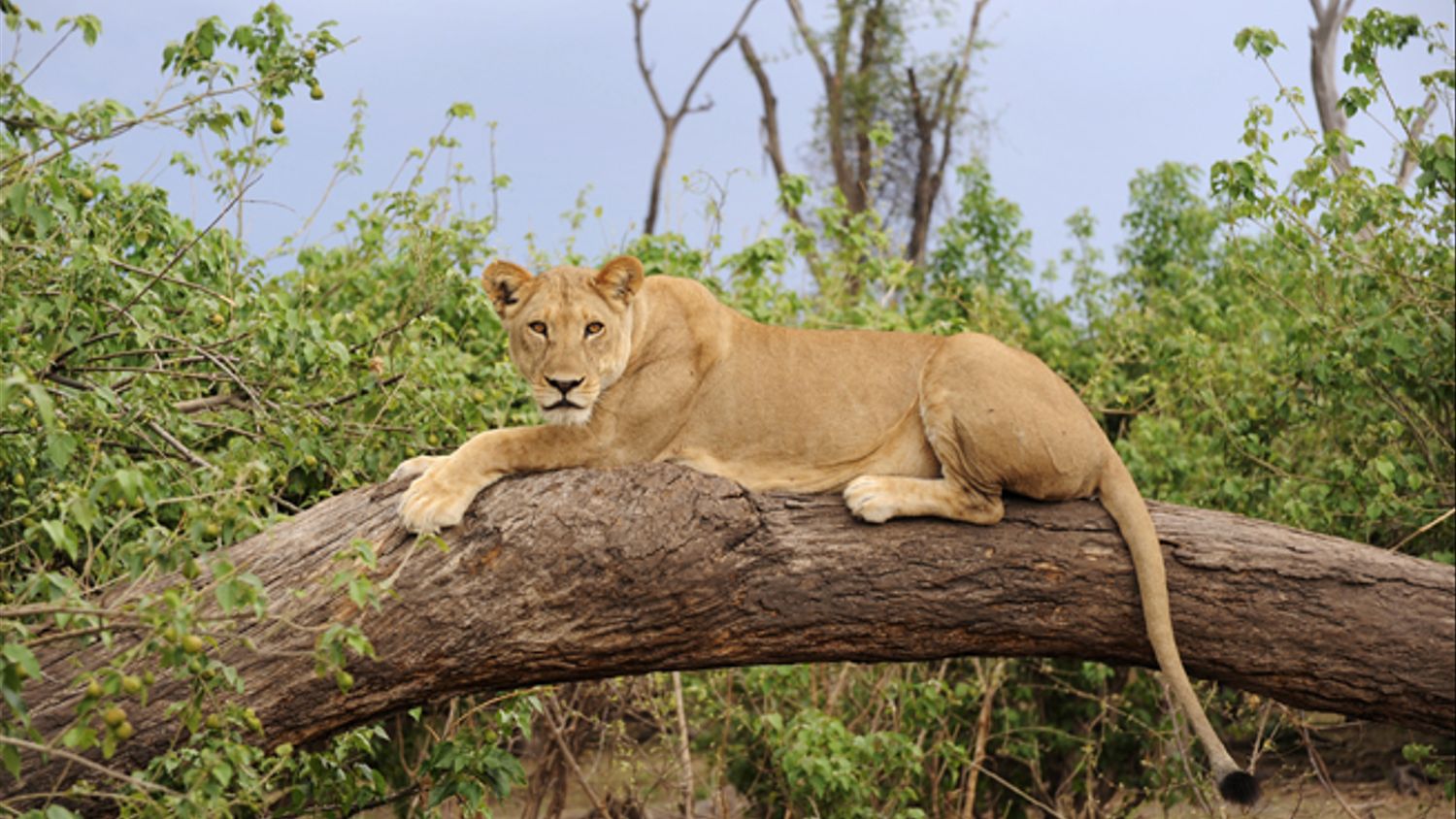 På stranden ligger en mycket ståtlig lejonhanne, med en stor brandgul och svart man. Nu känns det verkligen som i Lejonkungen. Vår safaribil möts bara av en förströdd blick och verkar inte störa det minsta.