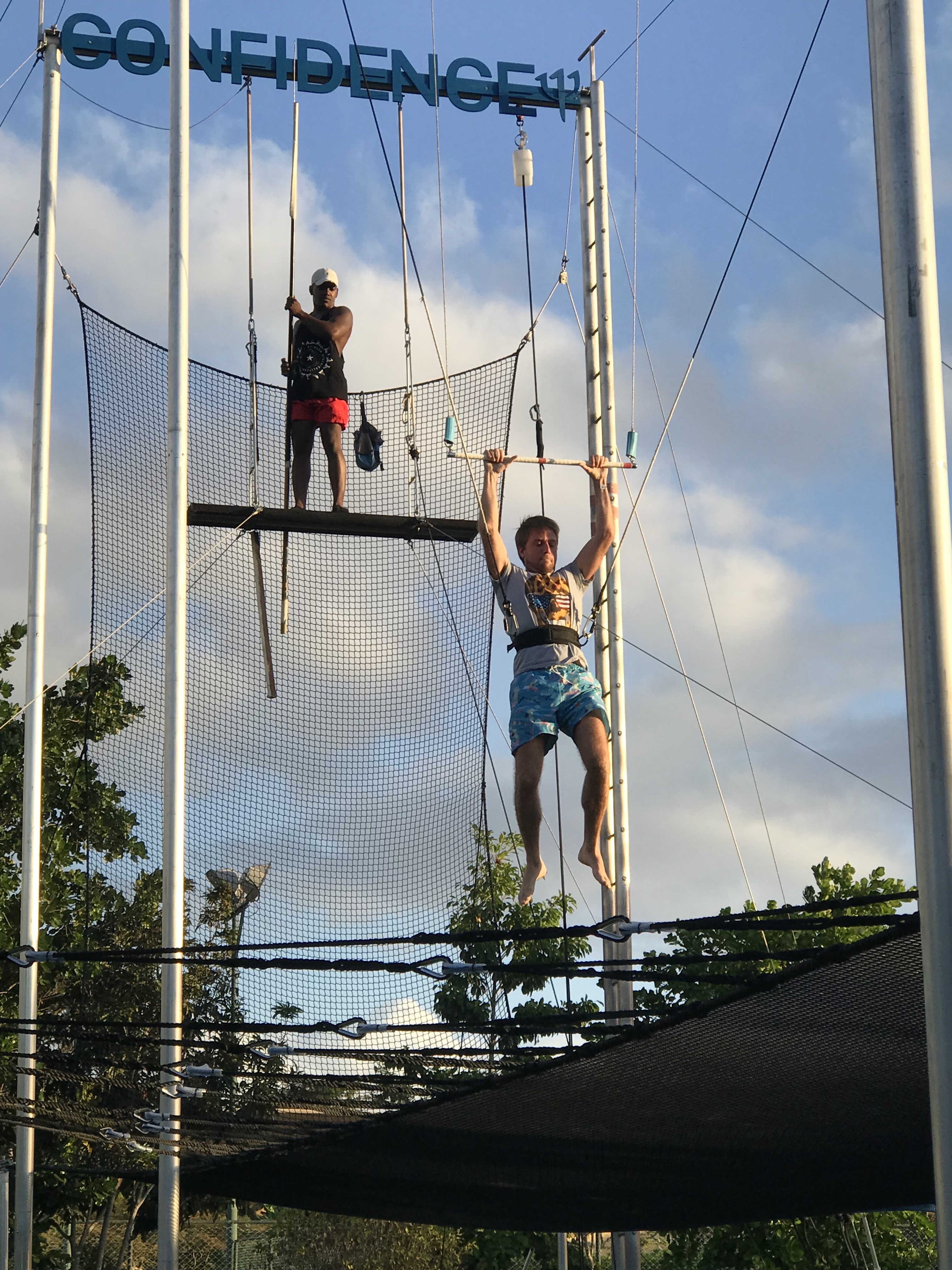 Senare samlar jag mod för att testa Sandpiper Bays cirkus trapets, vilket är en av Club Meds signatur aktiviteter. Detta är min första flygande trapets upplevelse någonsin och på hög höjd slänger jag mig ut och lyckas enligt instruktionerna svänga benen rakt upp och klarar nästan en ”catch” där man ska släppa taget och bli fångad i luften av en instruktör. Att våga pröva något helt nytt är en kick men det hade nog gått bättre om jag varit lite mer ”fit” vältränad.