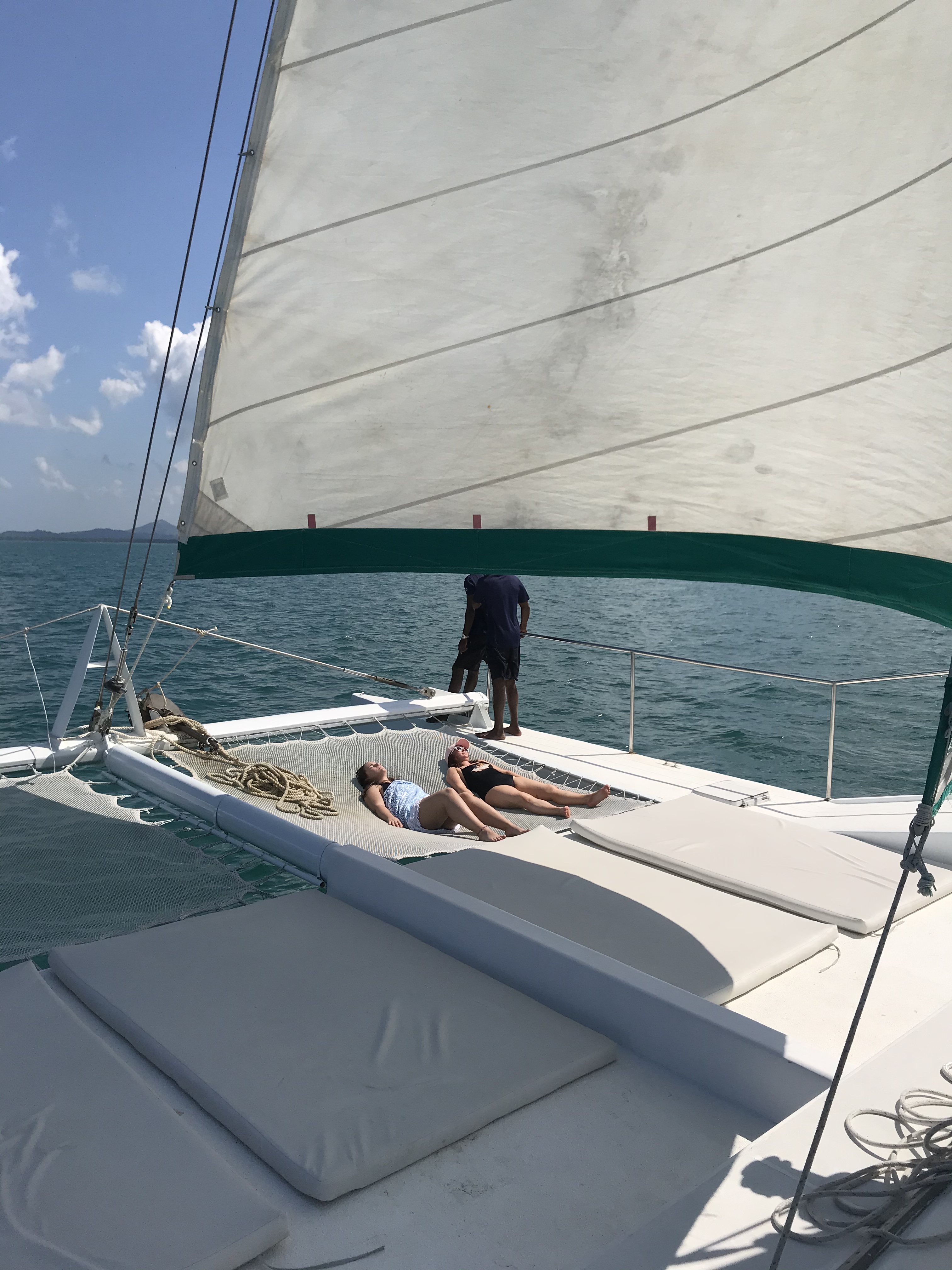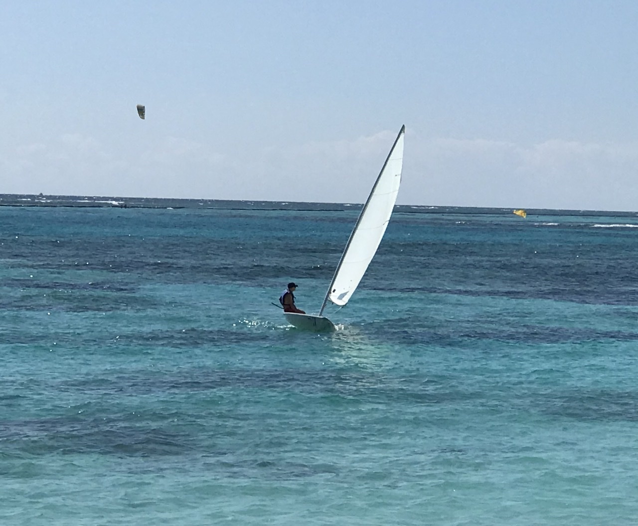 Vi väljer att gå ombord på ”Playa Esmeralda sailing cruise” och koppla av ute till havs under en halvdags kryssning, där man njuter av bad, grillad mat tillagad ombord och kallt rosévin.