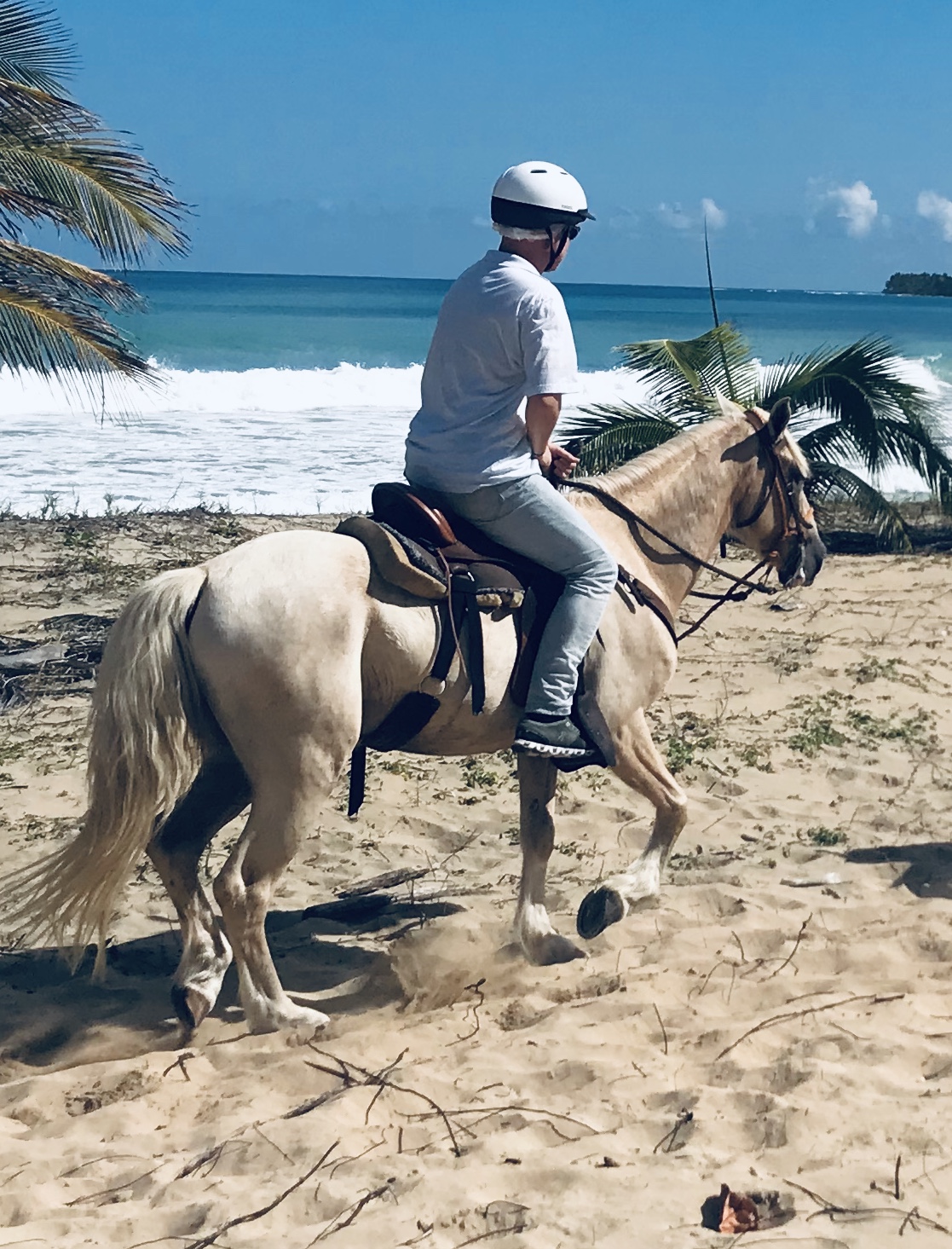Att svinga sig upp på 500 kg muskler och gallopera iväg på stranden kräver visst mod. En häst kan ju impulsivt dra iväg utan förvarning och då gäller det att hänga med annars åker man av. Även om det är lite nervöst så är det en sann adrenalinupplevelse att rida på stranden i vattenbrynet med havet på ena sidan och palmerna på andra sidan och höra vattnet plaska från hovarna.