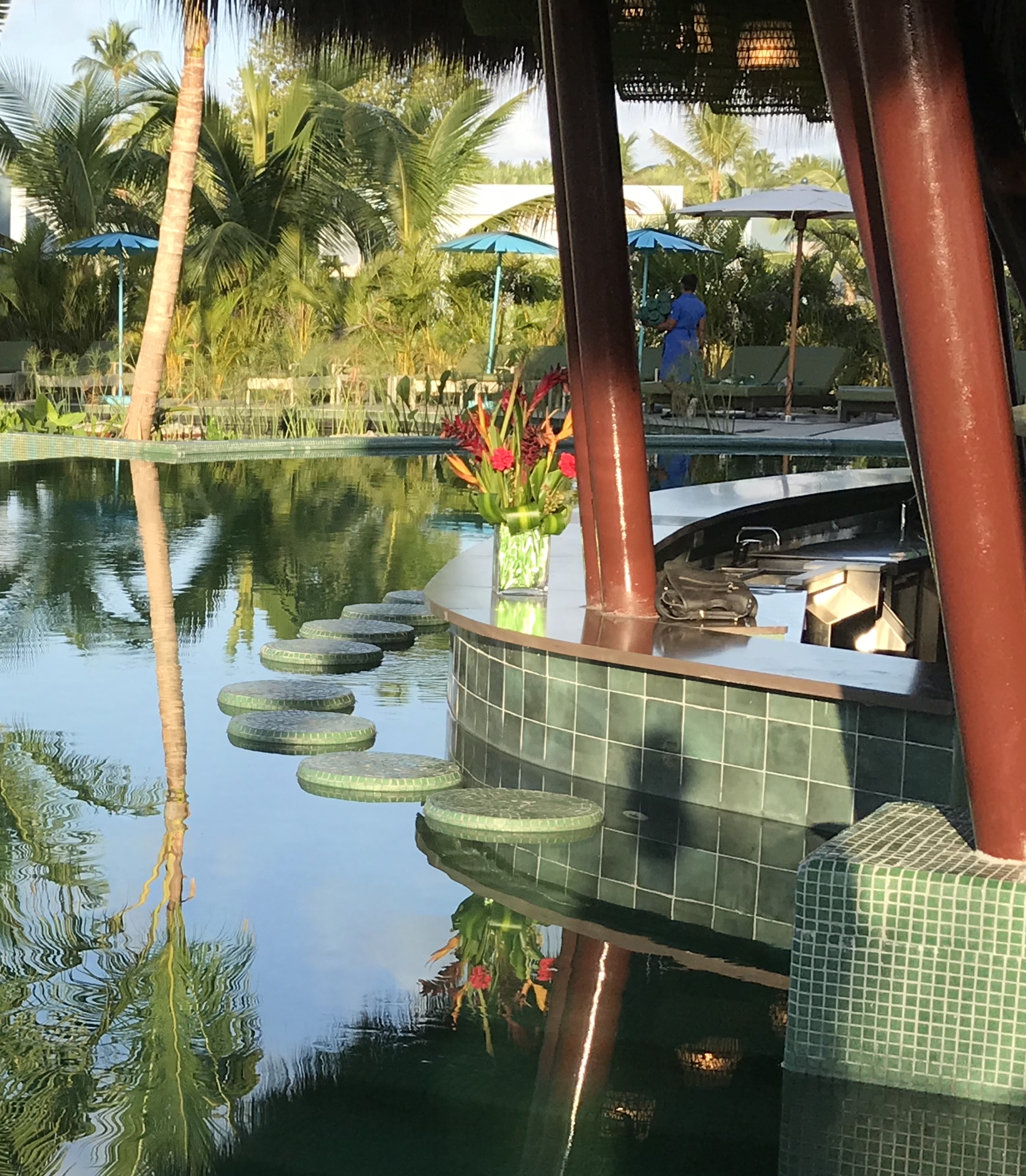 Michès består av fyra olika byar med olika karaktär och känsla. Jag känner direkt att jag trivs bäst i ekobyn ”Emerald Jungle” utan barnfamiljer där min vän bor omsluten av palmträd och en biologisk grön Zen pool med hälsobar, omgärdad med exotiska växter. Här finns även allt runt hörnet som jag älskar med Club Med: tennis, bågskytte, trapets och inte minst yogastudion kallad Canopy uppe bland trädtopparna, för att nämna några av de 25 sportaktiviteter som man kan välja på.